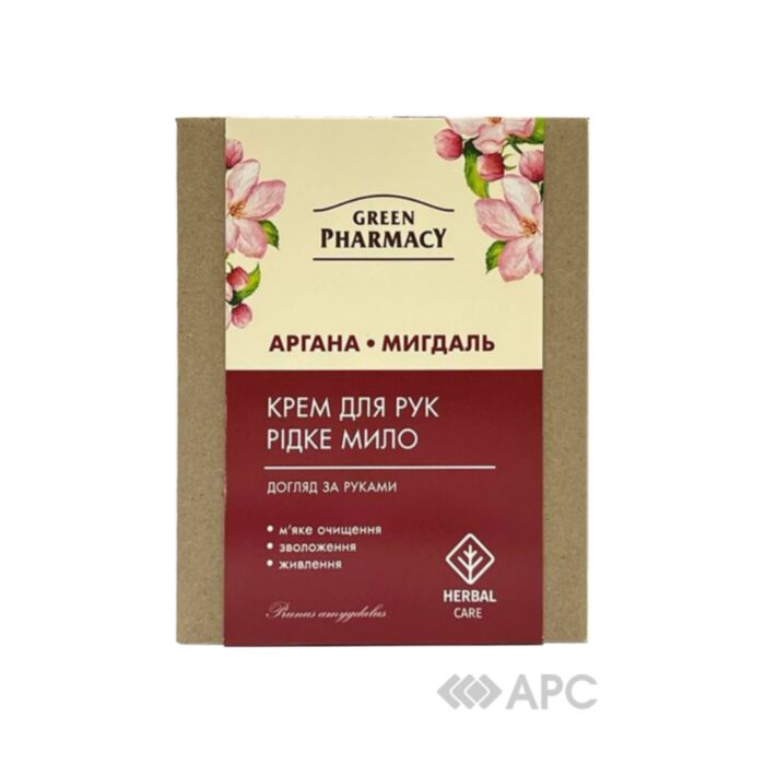 Набір Green Pharmacy Догляд за руками арганова олія та мигдаль — це ідеальний комплекс для збереження м'якості та шовковистості шкіри. Крем для рук об'ємом 100 мл живить і зволожує, захищаючи від зовнішніх чинників, таких як холод або агресивні миючі засоби. Рідке мило 460 мл ніжно очищає та зберігає вологу, захищаючи від сухості й підтримуючи здоровий вигляд шкіри. Поєднання аромату арганової олії та мигдалю створює неповторний догляд, який дарує комфорт, ніжність і чудовий аромат протягом дня.