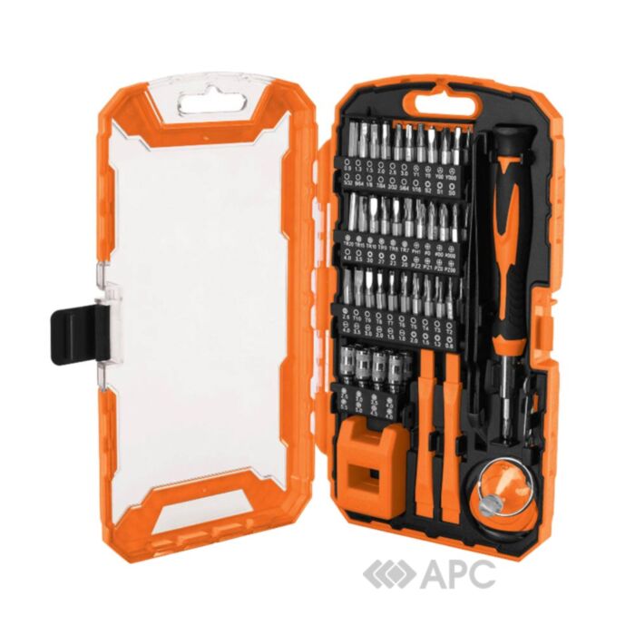 Набір інструментів для ремонту телефона Truper JGO-TEL-77 77 шт є комплектом прецизійних інструментів, спеціально розроблених для ремонту мобільних телефонів та інших електронних пристроїв. Він містить: 6 плоских наконечників (1–4 мм), 9 біт Torx (T2–T10), 8 шестигранних насадок (0,9–4 мм), 4 зірчастих наконечники (0,8–2 мм), 4 трикутні наконечники (2–3 мм), 1 гайковий ключ, 8 кубиків (2,5–5,5 мм), 1 вигнутий затискач, 1 ручка, 1 присоска для зняття панелі, 5 хрестоподібних наконечників (PH000–PH2), 6 біт Torx із замком (TS7–TS20), 7 шестигранних насадок (1/16"–5/32"), 4 біти Triwing (TR1000–TR11), 4 наконечники Pozidriv (PZ00–PZ2), 3 квадратні наконечники (S0–S2), 3 шпателі, 1 магнітизатор, 1 ключ для SIM-карт. Інструменти виготовлені з високоякісної сталі, що забезпечує міцність та довговічність. Набір міститься у компактному та зручному кейсі для зберігання та транспортування.