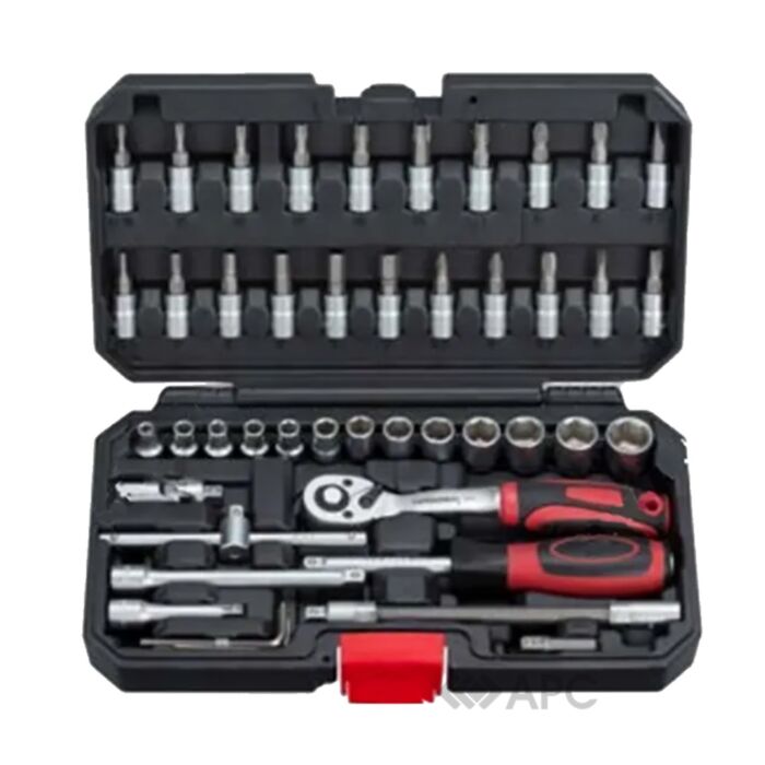 Набір інструментів Haisser 70179 стане в нагоді як для побутового, так і професійного використання. Найкращий варіант для виконання широкого спектру робіт. В набір входить: торцеві головки 13 шт, карданний шарнір 1/4", подовжувачі 2 шт, тріскачка 1 шт, вороток Т-подібний 1/4" 110 мм, вороток викрутковий 1/4" 150 мм, подовжувач гнучкий 1/4" 150 мм, адаптер 1/4" (квадрат) X 1/4" (HEX) 25 мм, ключі шестигранні: 1,27, 1.5, 2, 2.5 мм - 4шт, голівки-біти 1/4": (SL 4, 5.5, 7), (PH 1, 2, 3), (PZ 1, 2, 3), (HEX 3, 4, 5, 6, 7, 8), (T 10, 15, 20, 25, 30, 40) - 21шт, ударостійкий кейс.