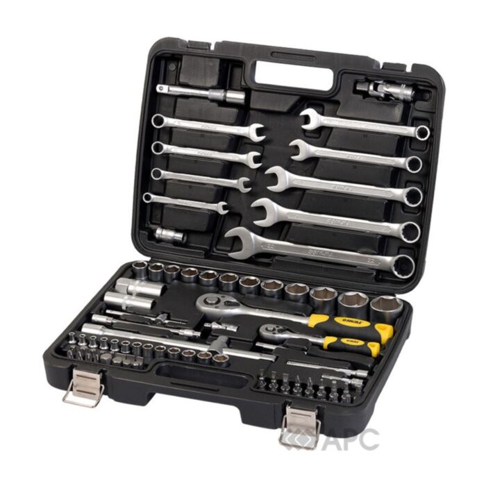 Набір інструментів Сталь 70008 АТ-8212 стане в нагоді як для побутового, так і професійного використання. Найкращий варіант для виконання широкого спектру робіт. В набір входить: подовжувач (3 шт), вороток, карданний шарнір (2 шт), тріскачка, головки (2 шт), адаптер, гнучкий подовжувач, тріскачка з реверсом, викрутка, гайкові ключі комбіновані (9 шт), торцеві біти (17 шт), торцеві головки (13 шт), торцеві головки подовжені (12 шт), біти (16 шт), тримач біт, кейс. Довготривалий термін експлуатації забезпечений за рахунок використання лише якісних та міцних матеріалів, які витримують навантаження та інтенсивну роботу. Пластиковий кейс забезпечує зручне зберігання та легке транспортування. Представлений набір стане чудовим придбанням в якості подарунку для будь-якого майстра.