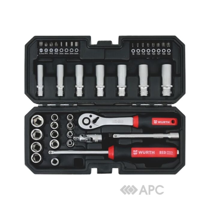 Набір інструментів Wurth 5763114040 1/4" 40 шт — це комплект високоякісних виробів, які призначені для виконання широкого спектра завдань. Він може використовуватися для обслуговування й ремонту автомобілів як в гаражних умовах, так і на великих автосервісах. Велике різноманіття інструментів, а також наявність лінійки всіх необхідних розмірів роблять набір багатофункціональним і корисним під час проведення найрізноплановіших маніпуляцій. Всі інструменти виготовлені із хром-ванадієвої сталі, тому характеризуються високими технічними та експлуатаційними параметрами, включаючи міцність та довговічність. Такий вид сталі стійкий до зносу, виникнення корозії та деформації, здатен витримувати інтенсивне використання і великі навантаження. Всі компоненти набору компактно складені в один кейс з надійного пластику.