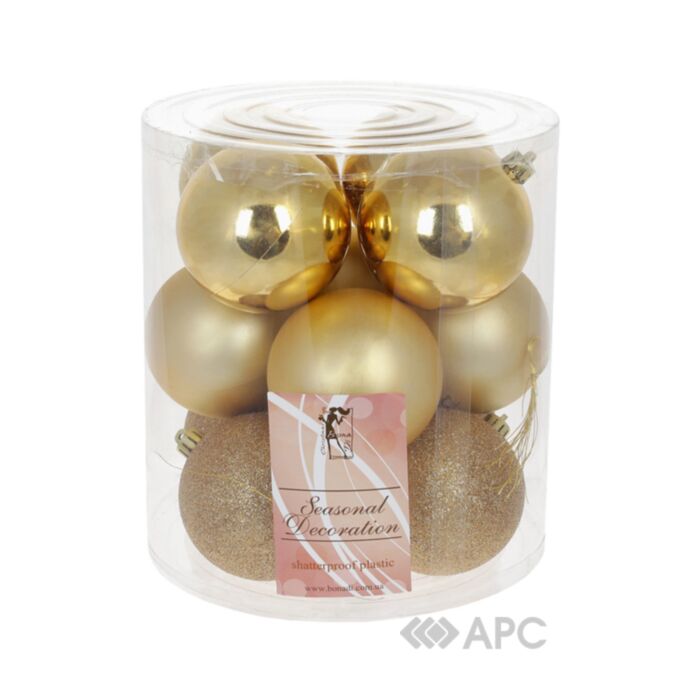 Набір ялинкових куль BonaDi 147-347 8 см 12 шт золото — святкові кульки на ялинку, що є обов'язковим атрибутом новорічних та різдвяних урочистостей. Саме форма кулі стала популярна ще в 17-му столітті, а традиція прикрашати святкове дерево різними предметами (не тільки декором) сягає значно віддаленішого періоду історії. І досі без цього оздоблювального елементу складно уявити різдвяне дерево. Раніше кульки виготовляли виключно зі скла, що виглядає, годі й казати, колоритно, проте дуже непрактично, особливо якщо в будинку є маленькі діти або ж домашні тварини. Та й самому буде не особливо приємно, походжаючи босоніж по новенькій підлозі з підігрівом, випадково наступити на скляний декор, падіння якого ви не помітили. Сучасні пластикові моделі за своїм зовнішнім виглядом нічим не поступаються своїм скляним попередникам, але приємно радують простотою і безпекою експлуатації. Пластикова куля не розіб'ється; вона легша за скляну, а значить ви зможете максимально пишно прикрасити не тільки штучне, але і живе дерево (гілки витримають). З колекціями BonaDi Шампань, Полярна ніч, Срібло, Арлекін, Бароко ви можете створити багатобарвну композицію або дотримуватися однієї колірної гами, чергуючи глянцеві й матові моделі, що також виглядає досить елегантно.