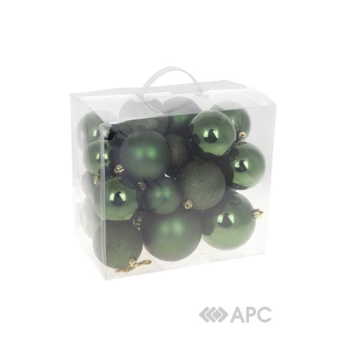 Набір ялинкових куль BonaDi 147-790 26 шт зелений — це елегантний комплект із 26 куль у насиченому кольорі, що додасть вашому новорічному декору затишку. Ідеально підходить для створення об'ємної та багатошарової композиції, оскільки включає іграшки трьох різних діаметрів: 10 см, 8 см та 6 см. Для візуальної динаміки та гри світла в наборі поєднуються три різні текстури: перламутрова (глянцева), матова та гліттерна (блискуча).