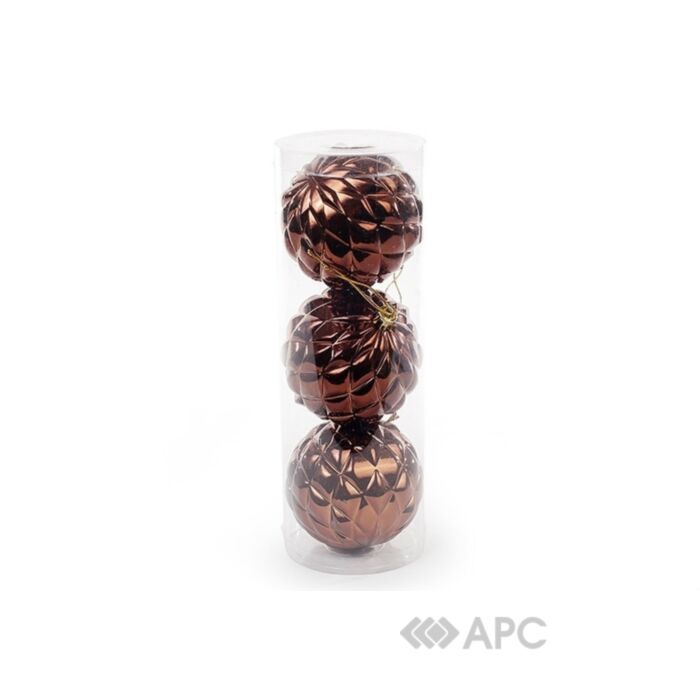 В набір входять пластмасові ялинкові прикраси діаметром 8 см, коричневого кольору.