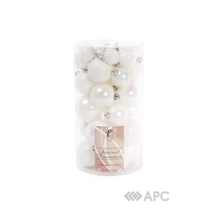 У набір входять пластмасові ялинкові прикраси білого кольору.