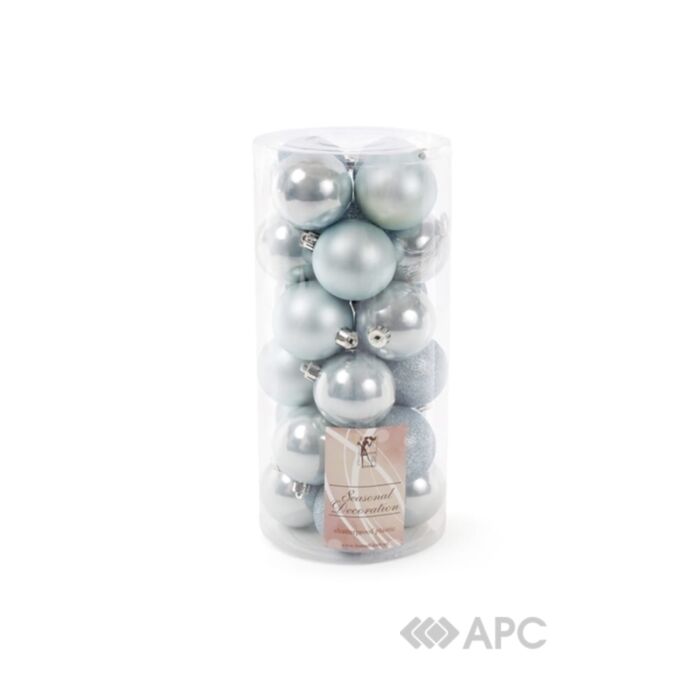 У набір входять пластмасові ялинкові прикраси голубого кольору.