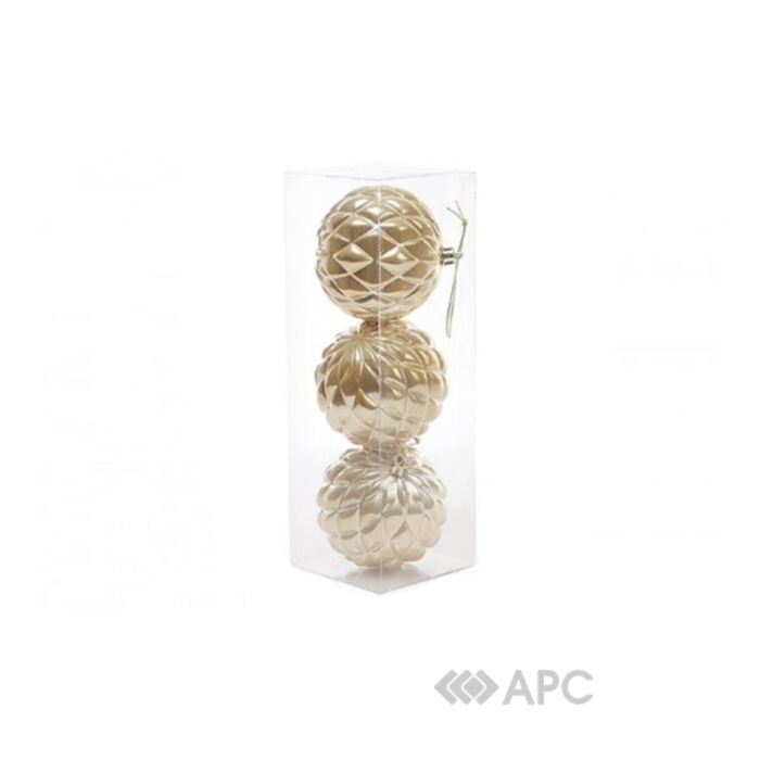 У набір входять пластмасові ялинкові прикраси кольору золотий перламутр.