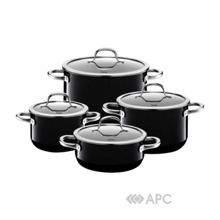 Набір каструль Silit WMFGroup Passion Black складається з чотирьох каструль з кришками об'ємом: 2, 3,7, 3,7, 6,4 л, діаметром: 16, 20 20, 24 см. Посуд можна використовувати на різних типах плит, включно з індукційними. Каструлі підходять для миття у посудомийній машині.