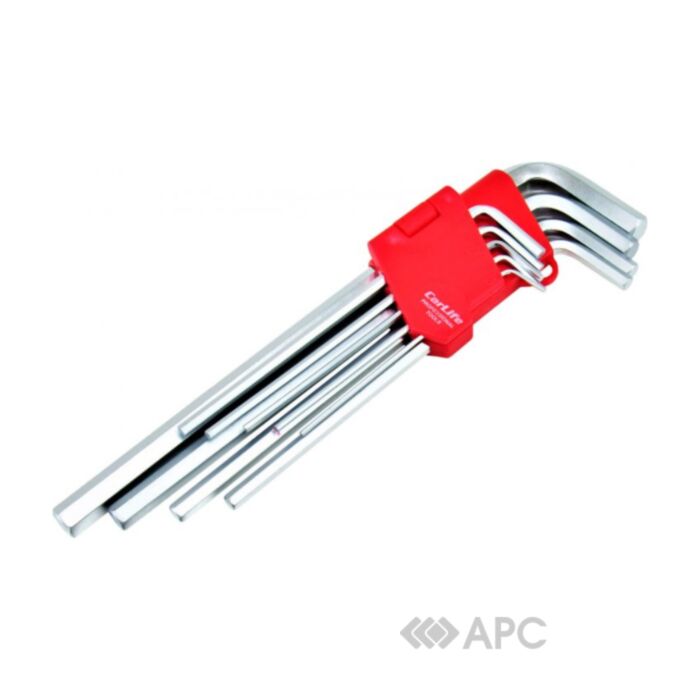 Набір ключів Г-подібних CarLife WR2116 - комплект подовжених шестигранних ключів, який чудово підходить для роботи з кріпильними елементами. Г-подібна форма передбачає наявність двох робочих сторін. Довга частина застосовується для важкодоступних та вузьких місць. А коротка прекрасно справляється з сильно затягнутими елементами. Хром-ванадієва сталь, із якої виготовлені ключі, наділяє виріб прекрасними технічними характеристиками. Комплект налічує 9 ключів розмірами: 1.5, 2, 2.5, 3, 4, 5, 6, 8, 10 мм.