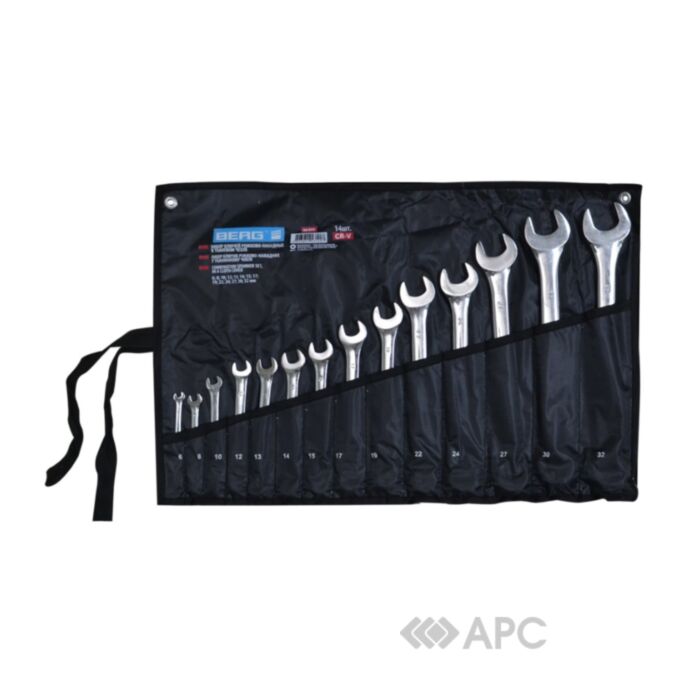 Набір ключів ріжково-накидних Berg 48-973 6-32 мм 14 шт у тканинному чохлі є універсальним рішенням. У наборі об'єднані ключі різних розмірів, завдяки чому в разі ремонту або обслуговування техніки не доведеться докуповувати рідкісний ключ або шукати альтернативу — все буде знаходиться під рукою. Крім того, інструмент в комплекті дуже зручно зберігати.