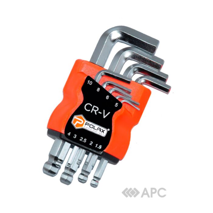 Набір шестигранних ключів Polax 25-009 - чудовий помічник при роботі з гайками та болтами відповідної форми. Г-подібна форма та наявність шарикового наконечника дають змогу працювати у важкодоступних місцях. Особливістю таких ключів є можливість працювати без виймання ключ під час роботи з гвинта при виконанні повного оберту. Це робить процес закручування швидшим та комфортнішим. Хром-ванадієва сталь наділяє вироби чудовими характеристиками - міцністю, зносостійкістю та довговічністю. Антикорозійне покриття захищає інструменти від негативного впливу вологи. Ключі завжди будуть під рукою та на своєму місці, адже вони зберігаються у відкритому футлярі.