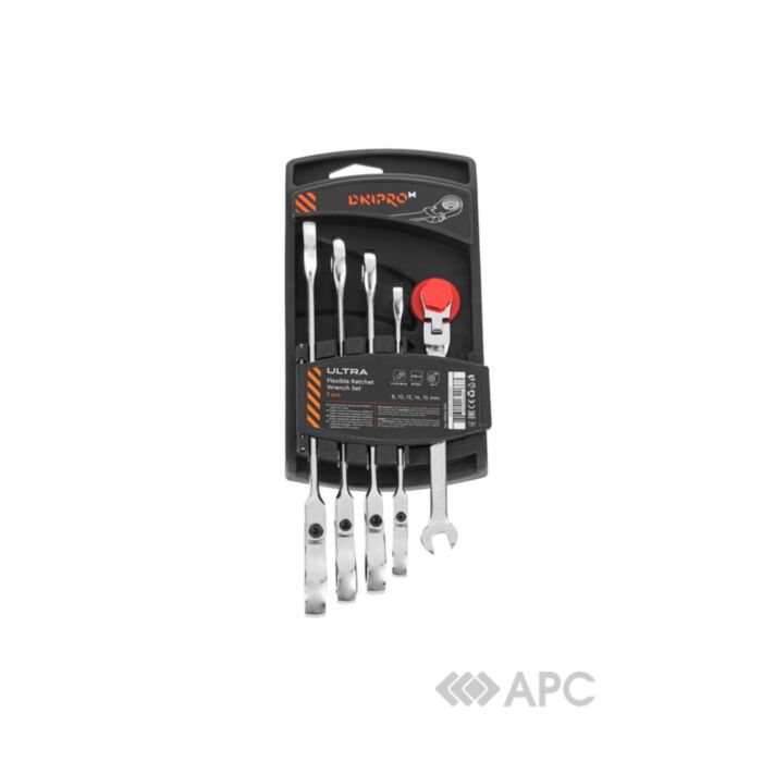 Набір ключів з тріскачкою та шарніром Dnipro-M 5 шт — має широке коло застосування, а саме: для монтажу/демонтажу різних видів кріплень, для слюсарних робіт, на СТО, шиномонтажах і в автомайстеренях, для приватного використання тощо.