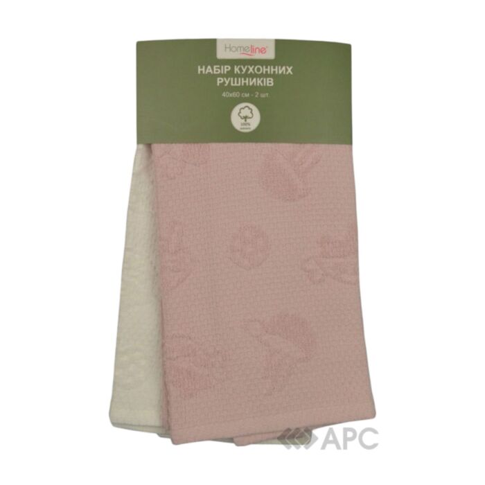 Набір рушників махрових кухонних 2 шт. Home Line 40х60 см 118293 кремового і рожевого кольору виготовлений з високоякісної натуральної бавовни. Матеріал дуже приємний на дотик, відмінно справляється з вбиранням вологи, не сідає та не розтягується після багаторазового прання.
