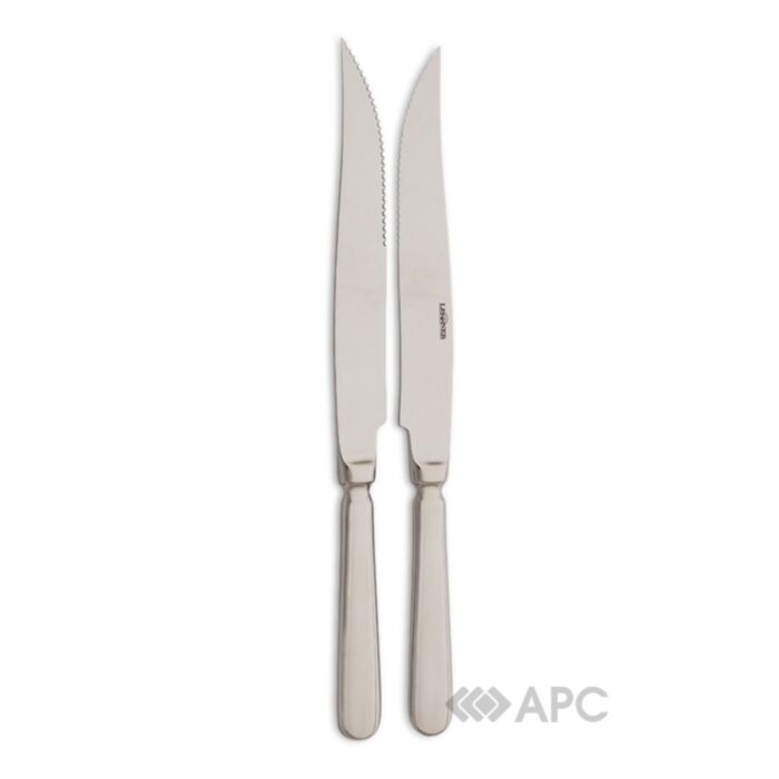 Лезо ножів тонке та гостре, хвилеподібного заточення тому, ними дуже зручно та легко буде розрізати шматки мяса. Виконані в дзеркальному поліруванні, мають простий та елегантний дизайн. Вони чудово поєднаються практично з будь-яким посудом і стануть практичним і красивим доповненням для будь-якої кухні.
