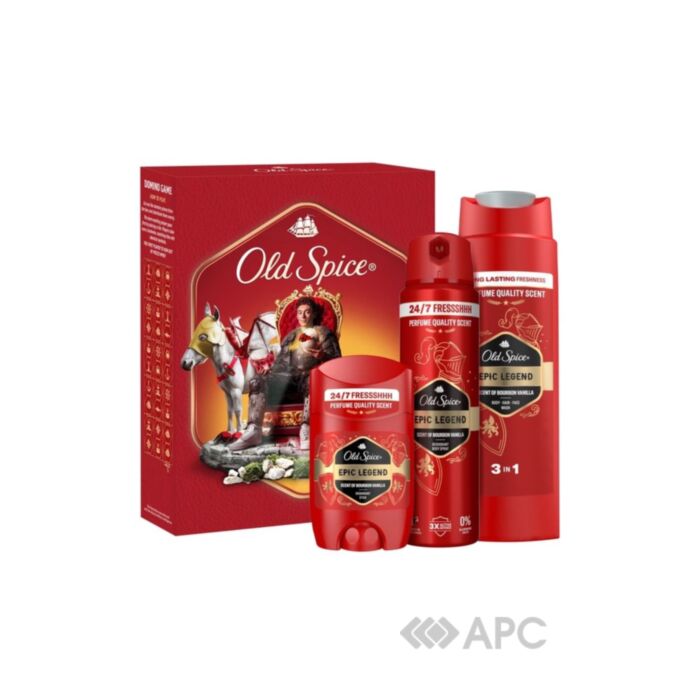 Набір Old Spice Epic Legend — це ідеальне рішення для сучасного, впевненого в собі чоловіка, який цінує свіжість, динамізм та комплексний догляд. Набір, що має стильне оформлення та ідеально підходить для презенту "під ключ", включає комплексний догляд для забезпечення бездоганної свіжості протягом усього активного дня: гель для душу, дезодорант-спрей та дезодорант-стік. Всі засоби об'єднані легендарним ароматом Epic Legend — чистим, свіжим та бадьорим запахом.