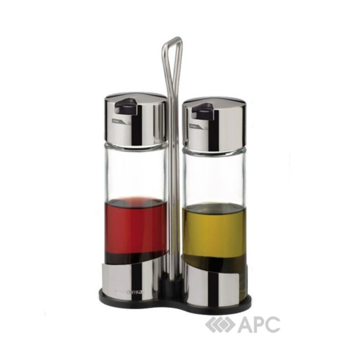 Столовий набір для спецій розроблений спеціально для використання вдома або в закладах громадського харчування. Виготовлений з високоякісної нержавіючої сталі, скла і міцного пластику. Обробка металевих поверхонь - глянець. Повертаючи кришку, ви можете легко відкривати або закривати ємності з маслом і оцтом. Діаметр, см: 5.