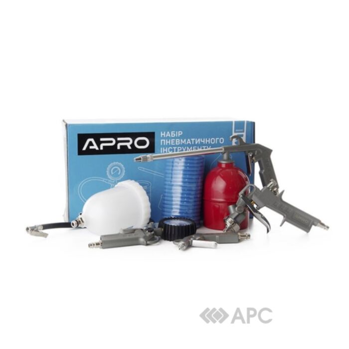 Набір пневмоінструментів APRO стане незамінним помічником при виконанні різних видів робіт у гаражі, майстерні, на СТО. В комплект входять 5 пристроїв зі з'єднанням 1/4":