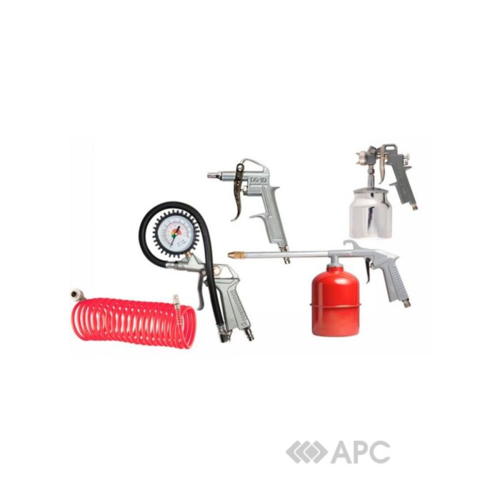 Набір пневмоінструментів Matrix 57302 виготовлений з високоякісного матеріалу. Даний набір використовується для фарбування, промивання, продування, а також для підкачування шин. Може застосовуватися як в побутових (гараж, домашня майстерня), так і в професійних (автосервіси, виробництво меблів тощо) умовах. Підходить до всіх видів пневматичних компресорів.