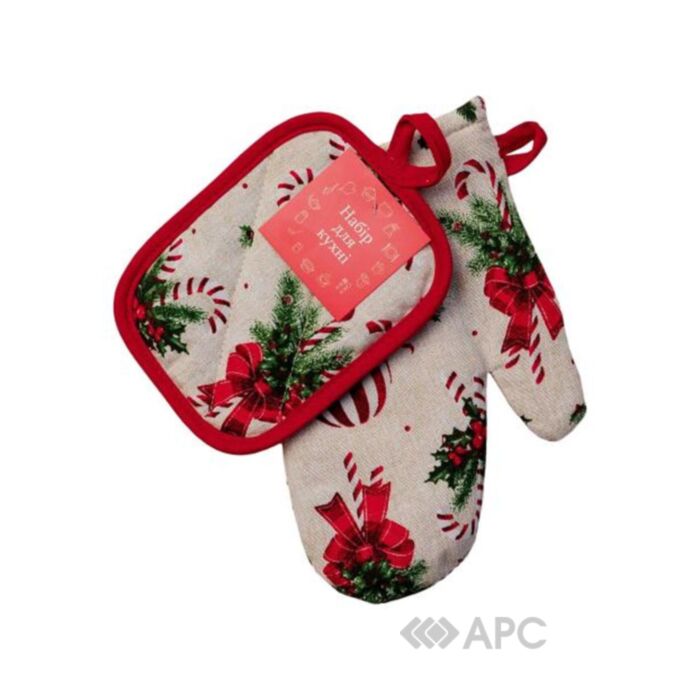Набір рукавиця та прихватка Прованс Stripe Balls — це комплект, який виконаний у стильному, новорічному дизайні. Виготовлений з високоякісного матеріалу – 60% бавовни і 40% поліестеру. Усі 2 елементи не лише практичні, але й естетичні, додають святкового настрою та створюють на кухні атмосферу домашнього затишку та тепла. Вони стануть незамінними помічниками у приготуванні святкової їжі та надійного захисту Ваших рук. Продукція бренду характеризується відмінними експлуатаційними властивостями, довговічністю та стійкістю до багаторазового прання. Розмір прихватки: 15х20 см, рукавиці: 30х18 см.