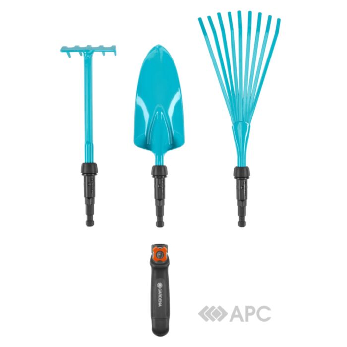 Набір садового інструменту Gardena Combisystem - це зручний та легкий комплект, створений спеціально для ефективного догляду за рослинами, квітами та невеличкими кущами. Набір відзначається такими характеристиками, як міцна металева робоча частина, пластмасові рукоятки для зручності користування та прогумований тримач, який забезпечує надійний та комфортний захват.