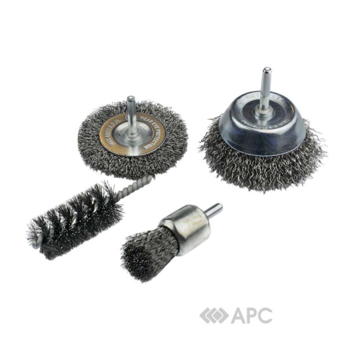 Набір щіток з гофрованої дроту забезпечить повноцінну віиокоякысну обробку поверхонь, виконаних з різних матеріалів. Обдирання і зачистка виробів за допомогою представленого набору можливий не тільки з рівними поверхнями, але також зі складними формами, вигинами, пазами і так далі. Прекрасне придбання для ремонту чи особистої майстерні.