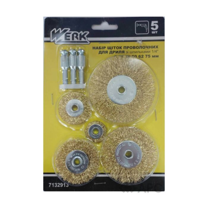 Набір щіток дротяних WERK WE107715/7132913 5 шт застосовується як додаткова насадка для дрилі і шуруповерта для зачищення поверхонь з металу, пластику і деревини. Ефективно справляється з брудом, іржею, корозією і лакофарбовими матеріалами. Завдяки зручній формі за допомогою щітки можна обробити внутрішні кути і стики металевих деталей і зварних швів. Для дротяної основи використовується тільки високоякісний матеріал з оптимальною щільністю і жорсткістю. Вона розрахована на багаторазове використання.