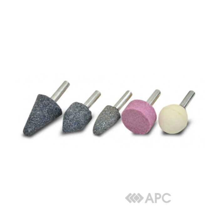 Набір шарошок Spitce 18-984 призначений для обробки металевих, дерев'яних і керамічних поверхонь. Кожен шліфкамінь виготовлений з синтетичного оксиду алюмінію (електрокорунду). П'ять насадок різної форми дозволяють виконувати якісну обробку. Для використання з дрилем, прямою шліфмашиною або гравером. Також підходить для застосування в верстатах.