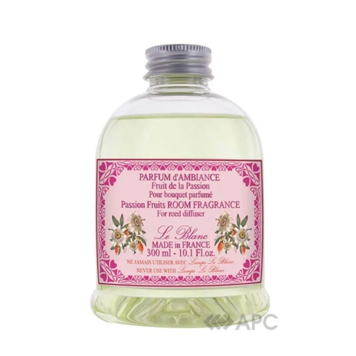 Наповнювач для дифузора Le Blanc 58 Плід пристрасті 300 мл використовується в процесі наповнення ємності з паличками для продовження ароматерапії. Рідина знаходиться в банці зі щільно закритою кришкою, тому її можна зберігати тривалий час та підливати субстанцію по мірі необхідності. Склад продукту складається з спирту, ефірних масел та природних ароматів, які не шкодять здоров'ю і не викликають алергію. Завдяки використанню паличок аромат поширюється більш інтенсивно, а якщо поставити аромадифузор на сонці, то букет запахів розкриється максимально повно.