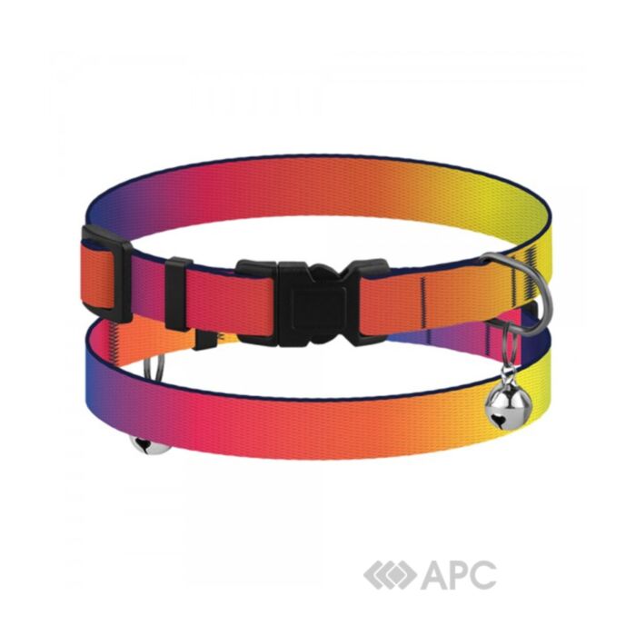 Нашийник для котів BronzeDog Urban Art Градієнт 49/8724 XS 18-28 см — це щоденний комфорт та індивідуальний стиль вашого улюбленця. Виготовлений з міцного та водночас легкого і якісного нейлону, що не вигорає на сонці та не втрачає кольору після прання. Він м’який, приємний на дотик, гнучкий та невибагливий в догляді. Красивий нашийник дає розуміти оточенню, що у тварини є власник. Пластикова пряжка автоматично розкривається у разі натягу, що гарантує безпеку тварини на прогулянці та допомагає легко звільнитися, якщо раптом вона за щось зачепилася. Маленький дзвіночок допоможе завжди розуміти, де саме знаходиться ваш кіт. Естетичний аксесуар покращить безпеку та підкреслить красу вашого улюбленця.