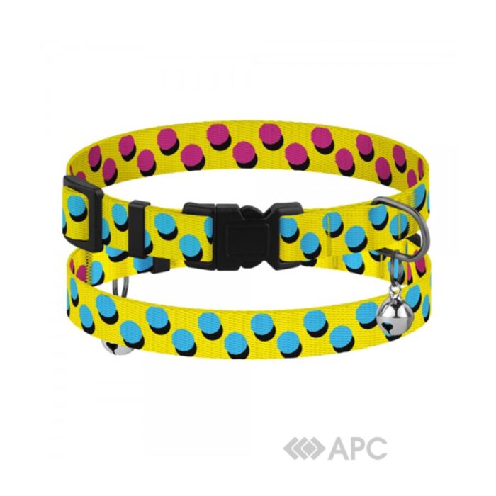 Нашийник для котів BronzeDog Urban Art Поп Арт 49/8712 XS 18-28 см — це щоденний комфорт та індивідуальний стиль вашого улюбленця. Виготовлений з міцного та водночас легкого і якісного нейлону, що не вигорає на сонці та не втрачає кольору після прання. Він м’який, приємний на дотик, гнучкий та невибагливий в догляді. Красивий нашийник дає розуміти оточенню, що у тварини є власник. Пластикова пряжка автоматично розкривається у разі натягу, що гарантує безпеку тварини на прогулянці та допомагає легко звільнитися, якщо раптом вона за щось зачепилася. Маленький дзвіночок допоможе завжди розуміти, де саме знаходиться ваш кіт. Естетичний аксесуар покращить безпеку та підкреслить красу вашого улюбленця.
