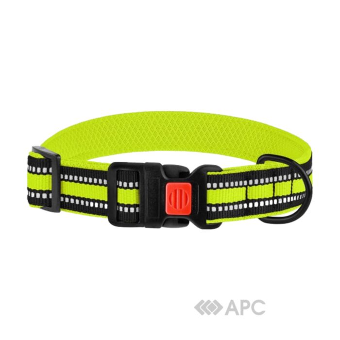 Нашийник для собак BronzeDog Mesh 52/1605/Т L 35-53 см лимонний – це сучасний високотехнологічний аксесуар для комфортних прогулянок з чотирилапим другом. Він виготовлений з міцного нейлону з двошаровою 3D сіткою, що має стійкість до взаємодії з водним середовищем, не вбирає неприємні запахи та може використовуватись в будь-яких погодних умовах. Тканина легка та гнучка, м’яка та невибаглива в догляді, приємна на дотик та практична у застосуванні. Не втрачає кольорів після прання та не вигорає на сонці. Нашийник має широкий діапазон регулювання розміру. Виріб укомплектований безпечною пряжкою з фіксатором Safe Lock та двома світловідбивними елементами товщиною 2 мм. Металеві елементи мають карбонове покриття для захисту від корозії. Стильний аксесуар від BronzeDog подбає про комфорт та безпеку вашого домашнього улюбленця.