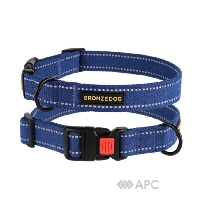 Нашийник для собак BronzeDog Сotton 52/1502Б/Т L 35-53 см синій – це міцний і надійний аксесуар для комфортних прогулянок з чотирилапим другом. Він виготовляється з натуральної бавовни найвищої якості. Брезентова стрічка не вигорає на сонці та не втрачає колір після прання. Вона м’яка, гнучка, практична та невибаглива в догляді. Нашийник має два ряди світловідбивних елементів. Високоякісна пластикова пряжка зі замком Safe Lock запобігає довільному розстібанню. Сталеві деталі мають чорне карбонове покриття, що захищає від атмосферних впливів та корозії. Стильний аксесуар від BronzeDog подбає про комфорт та безпеку вашого домашнього улюбленця.