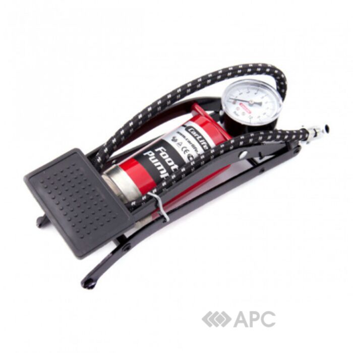 Насос ножний CarLife FP840 з манометром — необхідна річ у кожному транспортному засобі та у будинку. Відмінно накачує повітрям автомобільну та велосипедну шини, ґумову лотку або футбольний м'яч.