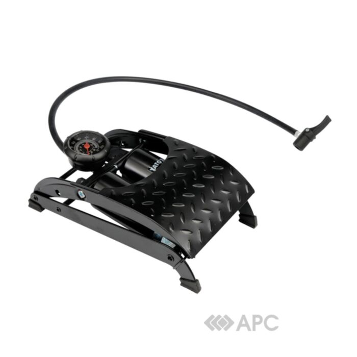 Насос для авто з максимальним тиском 7 бар виготовлено зі сталі з антикорозійною обробкою. Набір перехідників дозволяє накачувати надувні вироби та спортивний інвентар. Стрілочний манометр вимірює тиск по системі PSi і кПа. Легкий хід педалі мінімізує прикладання зусиль та економить час.