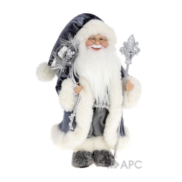 Новорічну іграшку Санта BonaDi 822-321 40 см графітову можна поставити як під ялинку, так і на стіл або журнальний столик, витончено прикрасивши декоративними стилізованими свічниками, квіткою Пуансетії, новорічними віночками й застеливши різдвяну скатертину.