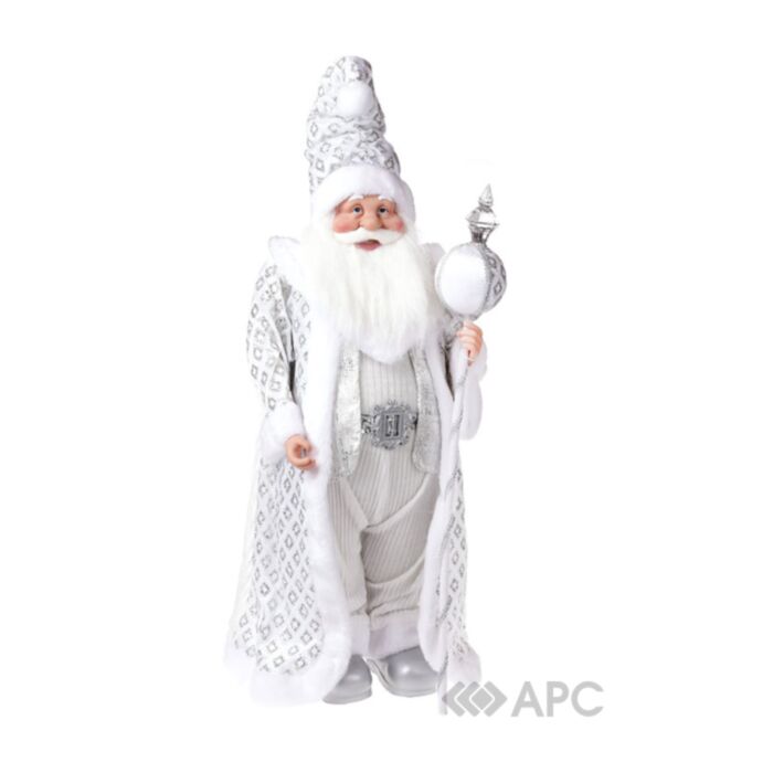 Новорічна іграшка Санта BonaDi — це ідеальний декор для облаштування загадкової, зимової атмосфери. Не лише діти будуть в захваті від даного персонажа, але й дорослі, що завітають до вас - обов’язково кинуть на нього оком. Клаус виготовлений з безпечного пластику, має срібний образ із якісної тканини. Упакування - коричнева картонна коробка. Висота виробу 71 см, внаслідок цього елемент точно буде помітний у вашому інтер’єрі.