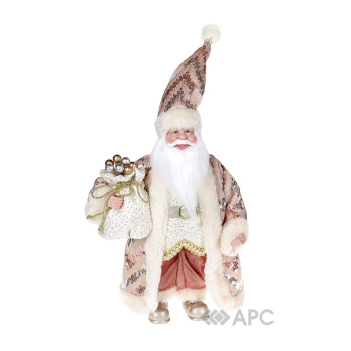 Новорічну іграшку Санта BonaDi NY14-517 30 см рожеву можна поставити як під ялинку, так і на стіл або журнальний столик, витончено прикрасивши декоративними стилізованими свічниками, квіткою Пуансетії, новорічними віночками й застеливши різдвяну скатертину.