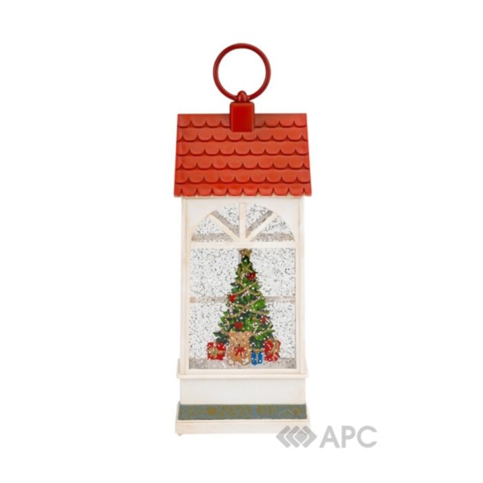 Ліхтар виконаний у святковій тематиці: всередині прозорого корпусу розміщена ялинка, ведмедик та подарунки. Висота 31 см робить його помітним елементом декору на столі, комоді чи підвіконні. Живлення здійснюється як від 3 ААА батарейок, так і за допомогою USB-дроту, що надає гнучкість у розміщенні. Завдяки своїм функціям та зовнішньому вигляду, цей ліхтар є чудовим тематичним декором та прекрасним подарунком до новорічних свят.