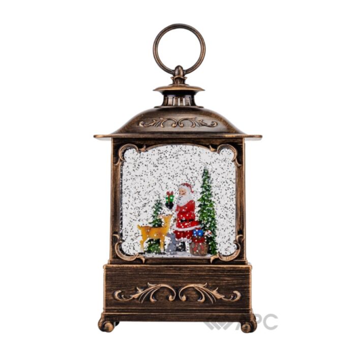 Новорічний ліхтар Святкове сяйво Elisey 9152-005 27 см — це вишукана прикраса, яка додасть святкового настрою будь-якому інтер'єру. Виготовлений із міцного полістоуна, декор поєднує естетику класичності з сучасними деталями. Розміри – 14,7 см в ширину та 27 см у висоту – дозволяють легко розмістити його на полиці, столі або під ялинкою. Усередині ліхтаря, за прозорим склом, оживає чарівна новорічна сцена: Санта Клаус, його вірний олень і милий зайчик, оточені зеленими ялинками.