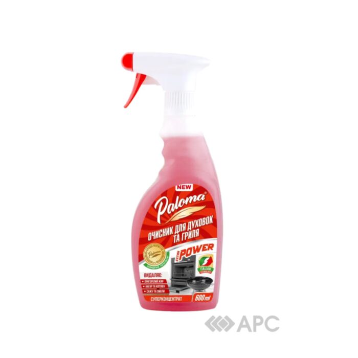 Очисник для духовок та гриля Paloma — ефективний засіб, що став улюбленцем у кожному домі. Швидко розщеплює пригорілий жир, сажу, нагар та інші забруднення, що виникають при приготуванні їжі. Унікальна формула активної дії за лічені хвилини зробить ваші девайси чистими, подарує приємний аромат та захищатиме від плям надалі. Завдяки зручному формату спрей використовується економно і однієї банки об’ємом 600 мл вистачить надовго.