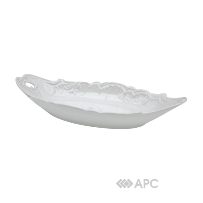 Колекція Rococo є однією з найбільш вироблених фасонів на фабриці Cmielow. Історична елегантність поєднується в ній з художньої вишуканістю. Рельєфний малюнок, щедро наповнений завитками і завихреннями, щільно огортає предмети посуду, підкреслює виразні можливості порцеляни. Бляклі, на перший погляд, декори зайвий раз нагадують нам тендітні і грайливі мотиви Рококо. Розмір: 25 см