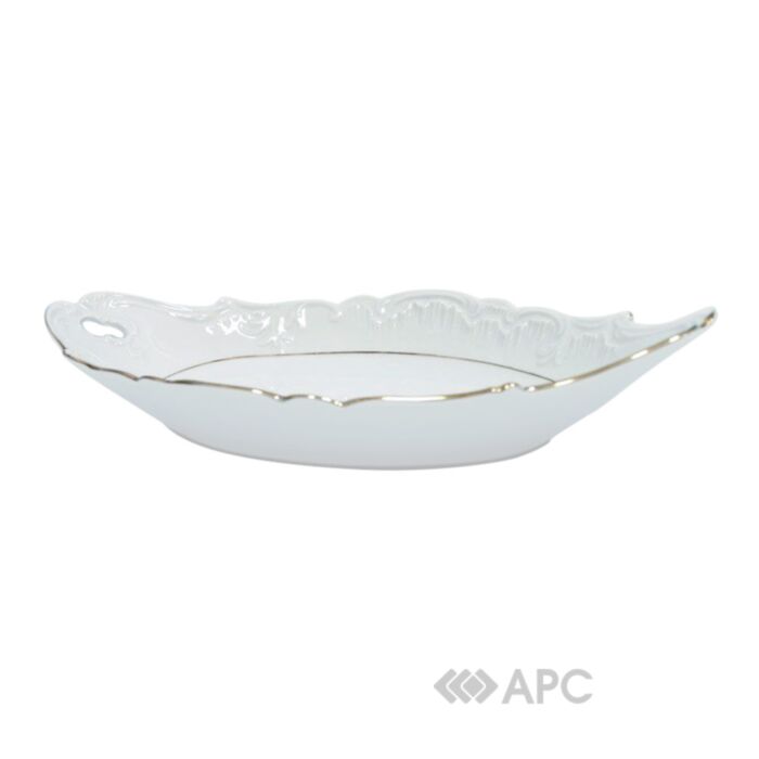 Колекція Rococo є однією з найбільш вироблених фасонів на фабриці Cmielow. Історична елегантність поєднується в ній з художньої вишуканістю. Рельєфний малюнок, щедро наповнений завитками і завихреннями, щільно огортає предмети посуду, підкреслює виразні можливості порцеляни. Бляклі, на перший погляд, декори зайвий раз нагадують нам тендітні і грайливі мотиви Рококо. Розмір: 25 см