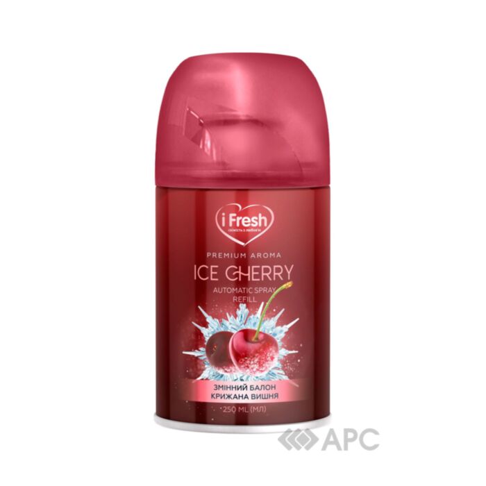 Освіжувач повітря iFresh Premium Aroma  Ice Cherry наповнить помешкання легким приємним ароматом. Ніжні, морські нотки допоможуть створити затишну атмосферу, повернуть відчуття свіжості та чистоти. Використання високоякісної безпечної продукції українського виробника з довготривалим ефектом — простий та надійний спосіб позбутись від запаху тварин, тютюнового диму, сирості тощо. Змінний балон на 250 мл легко встановлюється в автоматичний диспенсер та дарує справжню насолоду від перебування в приміщенні.