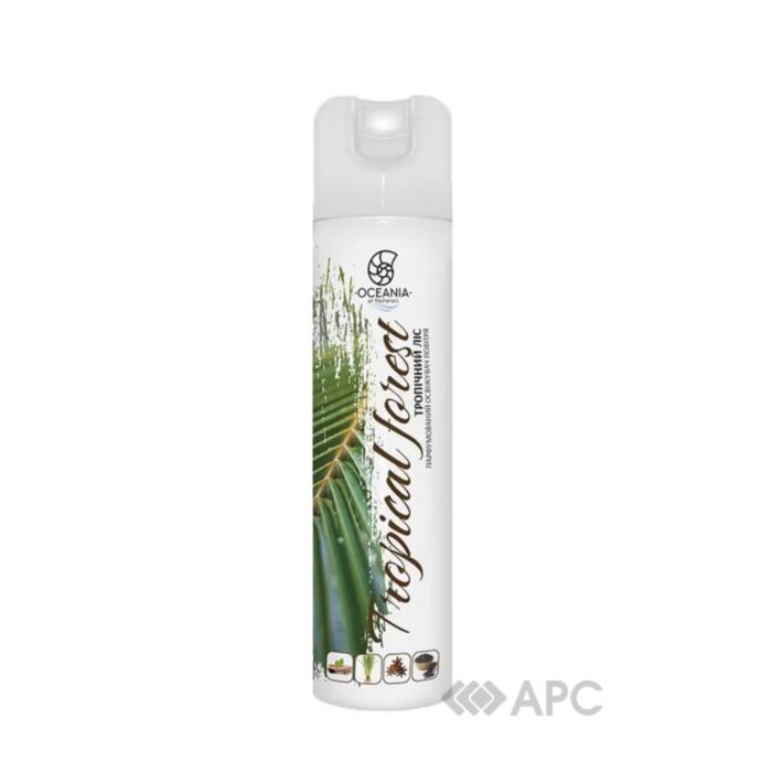 Освіжувач повітря Oceania Tropical forest 300 мл ефективно долає проблему неприємних запахів в приміщенні. Неповторний аромат дарує тривале відчуття свіжості та чистоти, створює в оселі атмосферу затишку та гармонії. Зручний формат спрею на 300 мл дозволяє насолоджуватись засобом впродовж кількох місяців (залежно від частоти використання). Регулювати інтенсивність, концентрованість запаху можна вручну: для легких пахощів достатньо одного-двох натискань.
