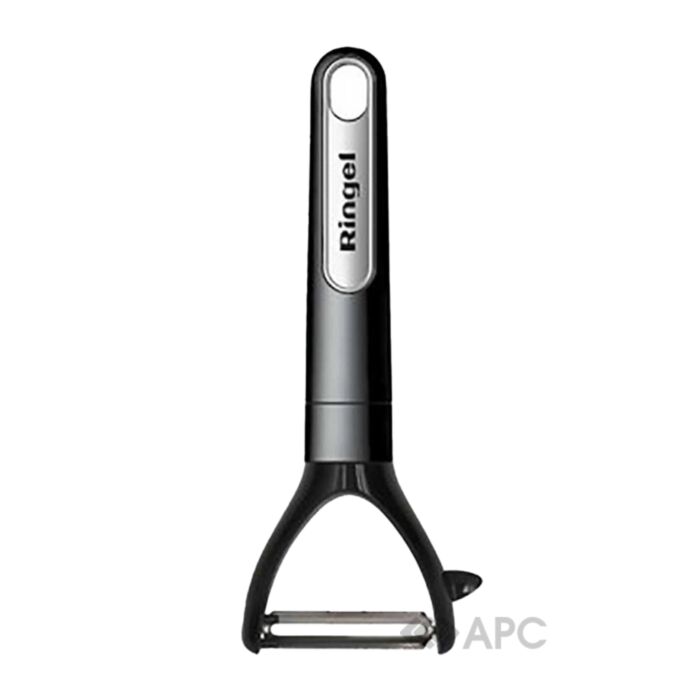 Овочечистка горизонтальна Ringel Tapfer RG-5121/7 — це різальний інструмент, що призначений для очищення овочів від їхньої шкірки. Виготовлене лезо із нержавіючої сталі, що не окислюється, стійка до корозії, не вбирає запахів. Ручка із пластику чорного кольору. Має зручну форму, що забезпечує безпечне та комфортне користування. Даний інструмент допомагає чистити овочі удвічі швидше ніж ножем та з мінімальною кількістю відходів. Можна мити у посудомийній машині.