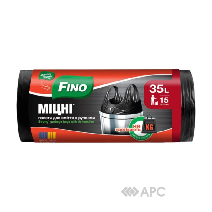 Пакети для сміття Fino Міцні— це універсальні міцні, сміттєві мішки, що допомагають підтримувати чистоту у вашому домі. В основному використовуються у побуті чи офісних приміщеннях. Виготовляються із якісного, еластичного поліетилену високого тиску, фіолетового кольору, який має стійкість до проколів. Перевагою даної продукції є те, що мішки в рулоні мають ручки, які спрощують процес виносу відходів. Об’єм 35 л підійде на сміттєвий бак від 15 л. Рулон налічує 15 штук, розмір 49х54 см.