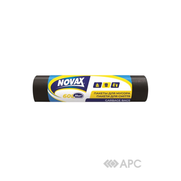 Пакети для сміття Novax — це універсальні сміттєві мішки, які допоможуть підтримувати чистоту у вашому домі чи офісі. Виготовляються на основі спеціальної сировини - лінійного поліетилену високого тиску, що забезпечує відмінну еластичність. Стійкий до проколів і розтягнень, чорного кольору. Об’єм 60 л чудово підійде для збільшеного відра чи кошика. Рулон налічує 15 штук, що мають розмір 60х70 см, товщина мішка 8 мкм.