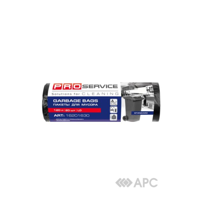 Пакети для сміття PROservice — це великі, міцні сміттєві мішки від польського виробника, що призначені для побутових, садових, ремонтних відходів. Часто використовують на барі чи кухні ресторану, візках покоївок у готелях, чи прибиральниць клінінгової компанії. Виготовляються із LD-поліетилену, що характеризується покращеною міцністю та стійкістю до важких вантажів, чорного кольору. Об’єм 120 л ідеально сяде на великі баки, товщина мішка 21 мкм. Рулон налічує 20 штук, розміром 70х110 см.