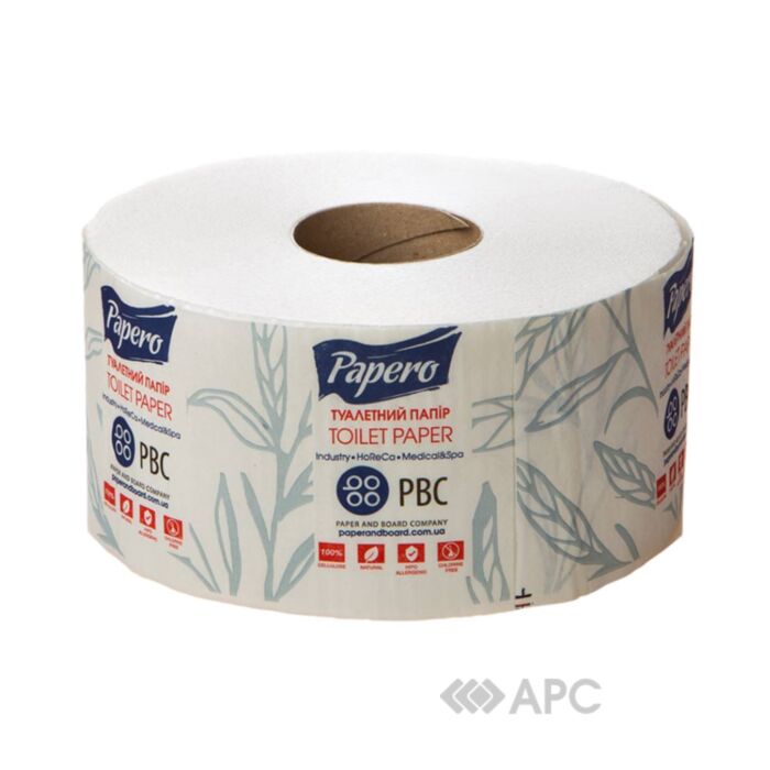 Папір туалетний Papero Джамбо — це універсальна продукція для інтимної гігієни, без якої важко уявити сучасне життя. Виготовляється на основі целюлози, двошарового типу, білого кольору. Завдяки великому розміру, використовується у санвузлах офісів, навчальних закладів, громадських приміщеннях, а також побутових умовах. Накручується на гільзу, що робить користування набагато комфортнішим. Довжина рулону 90 м, в упакування входить 12 штук.