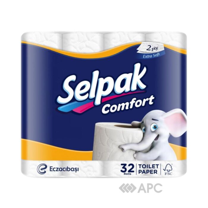 Папір туалетний Selpak Comfort — це універсальна продукція для інтимної гігієни, без якої важко уявити сучасне життя. Виготовлений із якісної 100% целюлози, має м’яку, ніжну структуру, що не подразнює шкіру та не викликає алергічних реакцій. Двошаровий, білого кольору, без ароматизації. Міцна будова, а також висока вологопоглинальна здатність виводять його на лідерські позиції ринку серед аналогічних товарів. Наявність втулки та перфорації робить користування ще комфортнішим. В упакування входить 32 рулони.